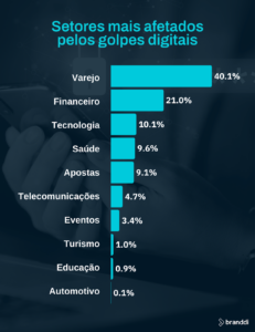 De acordo com os dados internos da Branddi, o varejo foi o setor mais atingido por golpes digitais no período