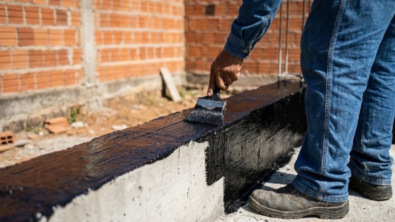 A maior causa de reformas caras em casas prontas é a umidade que sobe do terreno. A estratégia para evitar esse mal começa com a dupla impermeabilização da viga baldrame. A recomendação técnica consiste em aplicar duas demãos de impermeabilizante e, após 24 horas, reforçar a proteção com uma camada de tinta asfáltica.