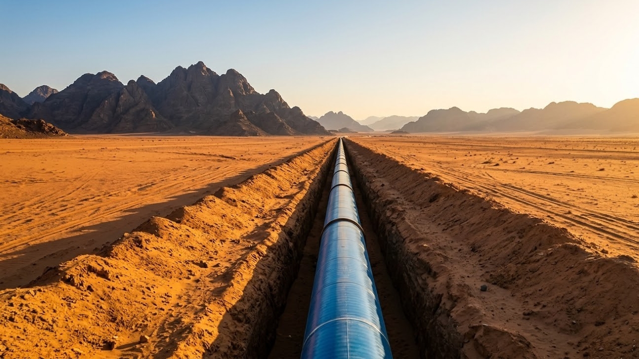 Arábia Saudita explode montanhas e cria uma rede colossal de 14 mil km para levar água dessalinizada do litoral ao coração do deserto