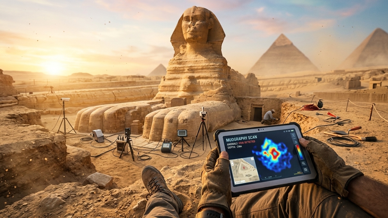 A descoberta da Câmara dos Registros sob a pata direita da Esfinge de Gizé valida antigas teorias arqueológicas em 2026. Cientistas egípcios e japoneses utilizaram muografia para localizar o espaço sem realizar perfurações invasivas no monumento milenar localizado no planalto de Gizé.