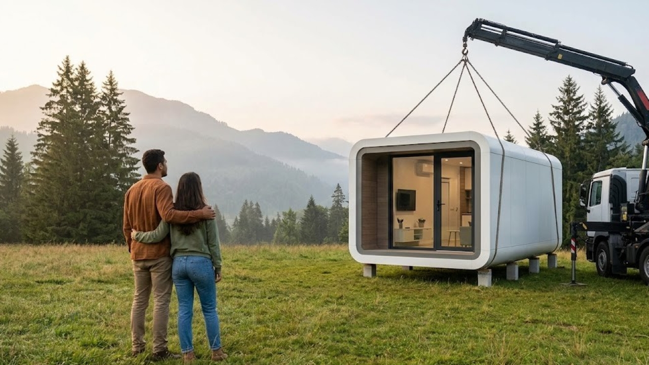 Diferente da construção tradicional, que exige meses de obra, a casa cápsula chega pronta ao terreno. Com peso entre 3.000 kg e 3.500 kg, ela pode ser apoiada sobre seis sapatas ou instalada diretamente em solo nivelado, dependendo da análise técnica. O comprador precisa providenciar apenas as esperas de água, energia, esgoto e caixa de gordura, com conexões concentradas na parte traseira da unidade.