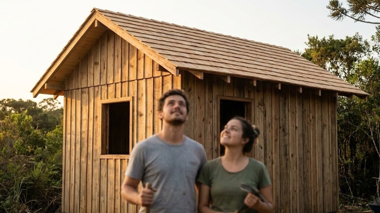 Sem experiência, sem mão de obra especializada e com pouca estrutura, um casal em Santa Catarina decidiu colocar a mão na massa e erguer uma mini casa 6×3 do zero. O que poderia ser mais um improviso virou método: eles aprenderam no “tio YouTube” como acertar o esquadro, montaram o telhado, fizeram a caixaria e ainda puxaram energia do vizinho com 100 metros de fio. O resultado é uma construção que mistura gambiarra e técnica, mas que entrega uma casa funcional.