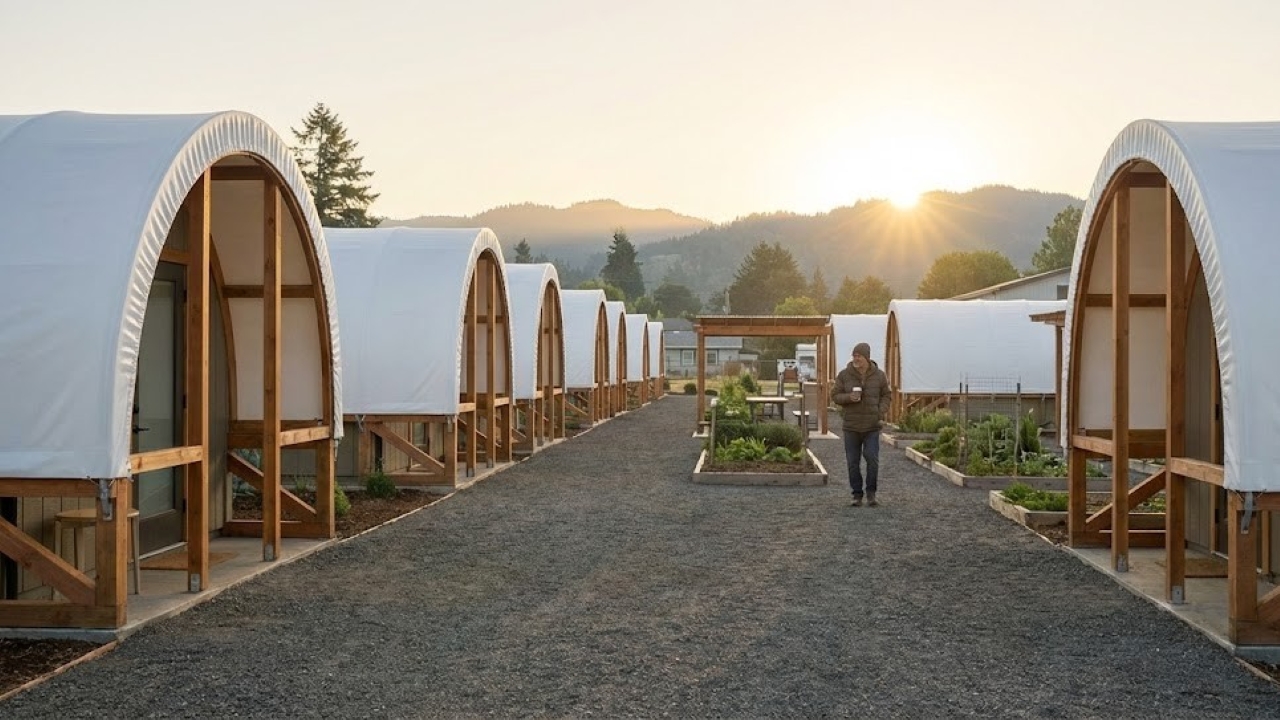 Na cidade de Eugene, no Oregon, uma solução simples e barata vem mudando a vida de pessoas em situação de rua. As Cabanas Conestoga são estruturas de baixo custo montadas em poucas horas, oferecendo abrigo seguro, trancável e resistente ao clima, enquanto os moradores recebem apoio social e ajuda para conseguir emprego e, em alguns casos, sair direto para um apartamento próprio.