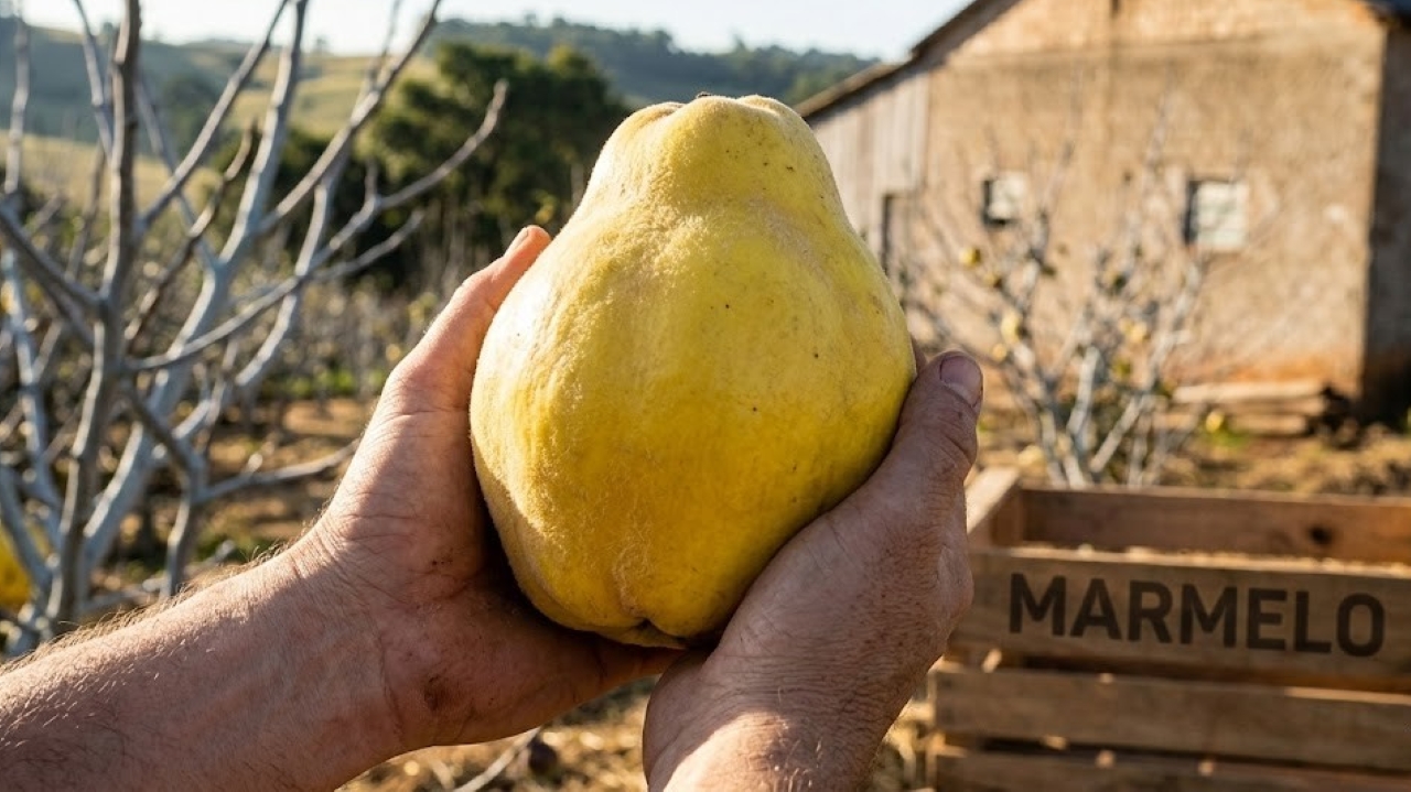 O marmelo é o orgulho e o desafio de Luciano. Exigente em frio e em água, produz melhor em altitude no Sul do Brasil. Segundo a Embrapa Clima Temperado, o marmeleiro demanda horas de frio no inverno para quebrar dormência e florescer com regularidade em regiões acima de 600 metros, o que converge com a experiência na Serra Gaúcha.