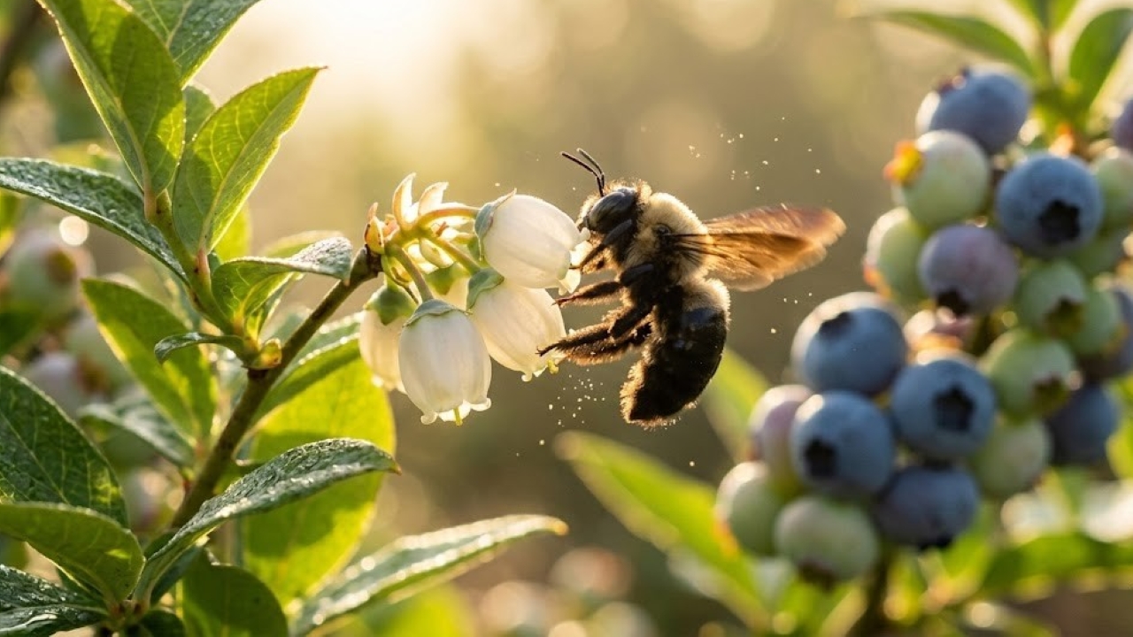 Para o mirtilo, abelhas nativas e mamangavas são chave. Pesquisas da Embrapa indicam que a polinização por abelhas de maior porte melhora o vingamento do mirtilo, já que a abelha europeia visita menos suas flores. Preservar esses polinizadores é vital para a agricultura familiar.