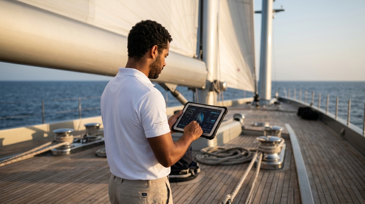 A tecnologia implementada pela holandesa Dykstra Naval Architects permite que todo esse tecido seja hasteado com o simples apertar de um botão eletrônico