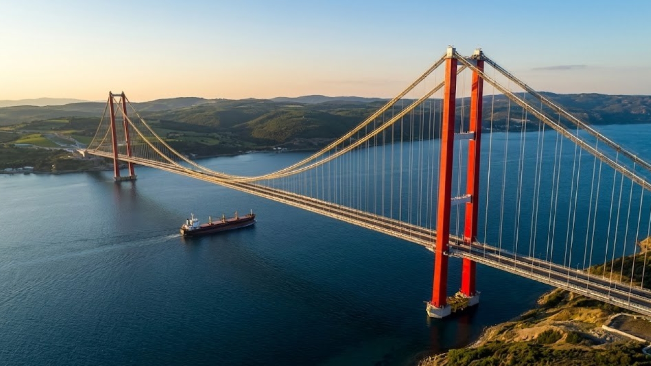 Com torres de 318 metros e um vão livre recorde de 2.023 metros, a maior ponte suspensa do mundo na Turquia virou o maior marco da engenharia ao unir dois continentes sobre o mar em tempo recorde