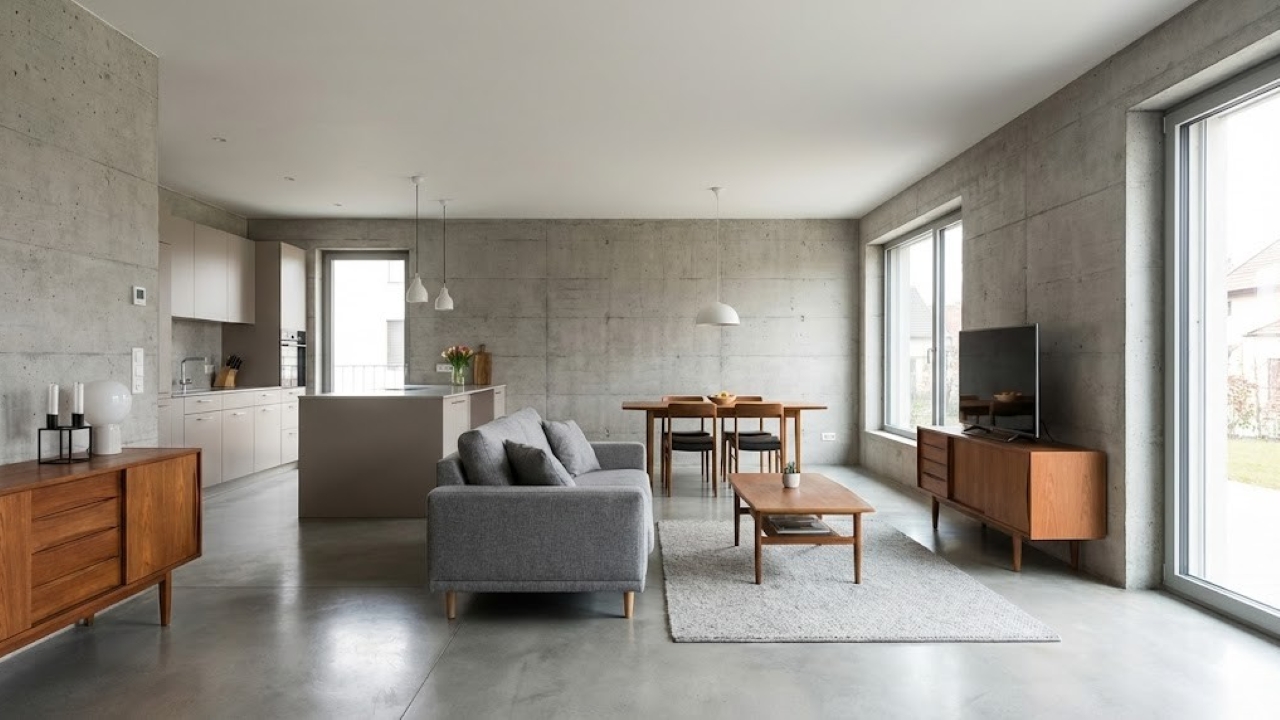 Uma residência de linhas retas, concreto aparente e ambientes que fluem sem barreiras. Inspirada no estilo europeu, a casa de concreto aparente construída por um casal reúne 2 quartos, integração total e um orçamento enxuto. Mais do que um lar, o projeto mostra que é possível unir sofisticação e autonomia com as próprias mãos.
