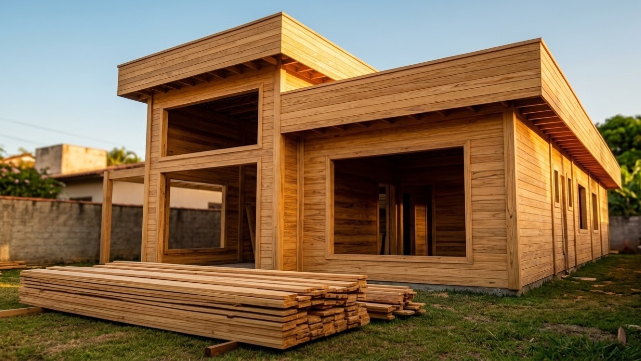 Construir uma moradia do zero geralmente exige meses de espera, canteiros sujos e orçamentos estourados. Para romper essa lógica, construtores provaram que uma casa com madeira de reflorestamento pode ser completamente montada em um prazo recorde de quatro dias. A técnica inteligente substitui a alvenaria úmida convencional por placas estruturais pré-cortadas e ferramentas portáteis de rápida aplicação.