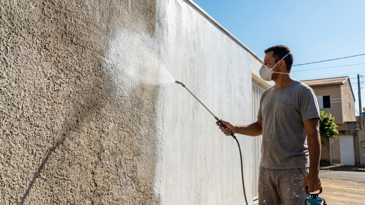 O truque de mestre ensinado pelo pedreiro experiente é treinar a movimentação contínua do braço para não concentrar o jato em um único ponto. Manter a distância correta entre o bico e a parede impede que a fachada fique com marcas de escorrimento horrorosas no final do dia.