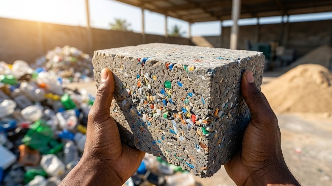 A composição dos blocos desenvolvidos pela Nelplast Eco Ghana é simples e objetiva: uma pasta formada por 70% de areia e 30% de plástico reciclado é moldada em blocos que substituem a alvenaria convencional. O plástico reciclado não é apenas um complemento, mas sim um componente essencial que altera a densidade e o comportamento do material, além de dar destinação a resíduos urbanos que antes iriam para aterros.