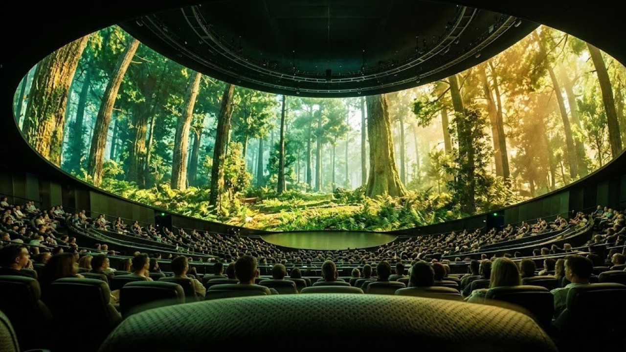 • Shows com visual 360 graus: A tela curva projeta imagens que envolvem completamente o público.