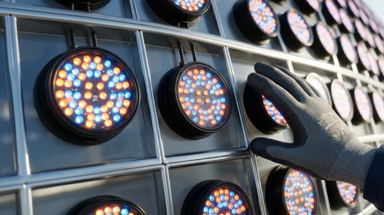 Ela é composta por aproximadamente 1,2 milhão de “pucks”, pequenos discos espaçados a cada 20 centímetros, cada um contendo 48 diodos capazes de exibir 256 milhões de cores