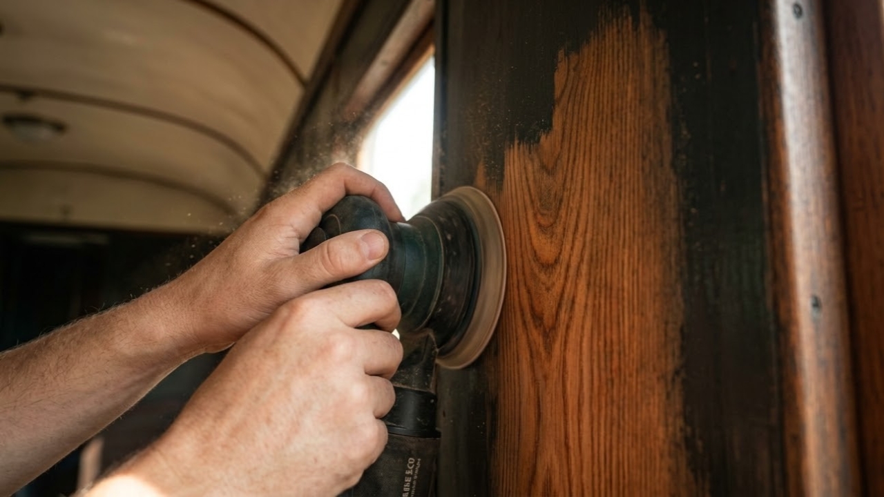 A prioridade dos restauradores foi reaproveitar ao máximo os materiais históricos para garantir o charme autêntico do projeto. Durante 6 meses de trabalho intenso, a família lixou manualmente as superfícies de madeira para remover décadas de tinta velha e tratar as partes deterioradas pelo tempo.