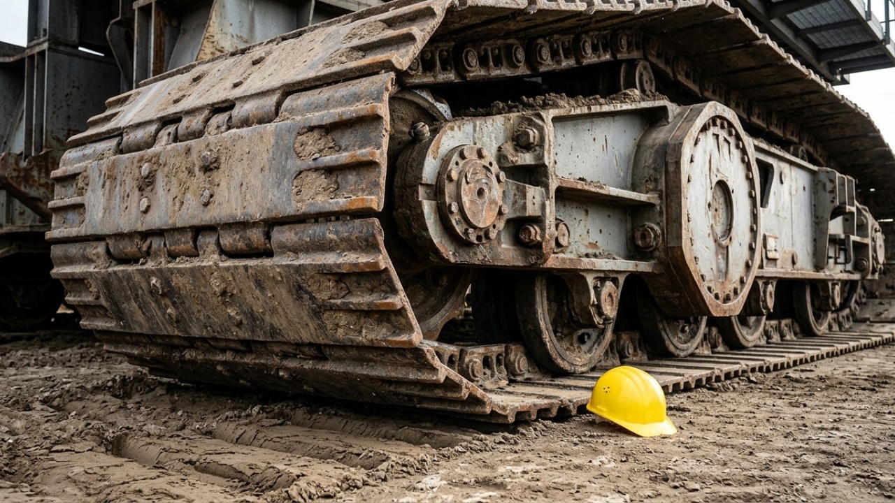 Apesar de toda essa massa, a máquina consegue se deslocar sobre o próprio terreno sem destruir a infraestrutura ao redor. A distribuição de peso entre as esteiras foi calculada para minimizar a pressão sobre o solo, tornando a movimentação viável mesmo em terrenos não preparados.