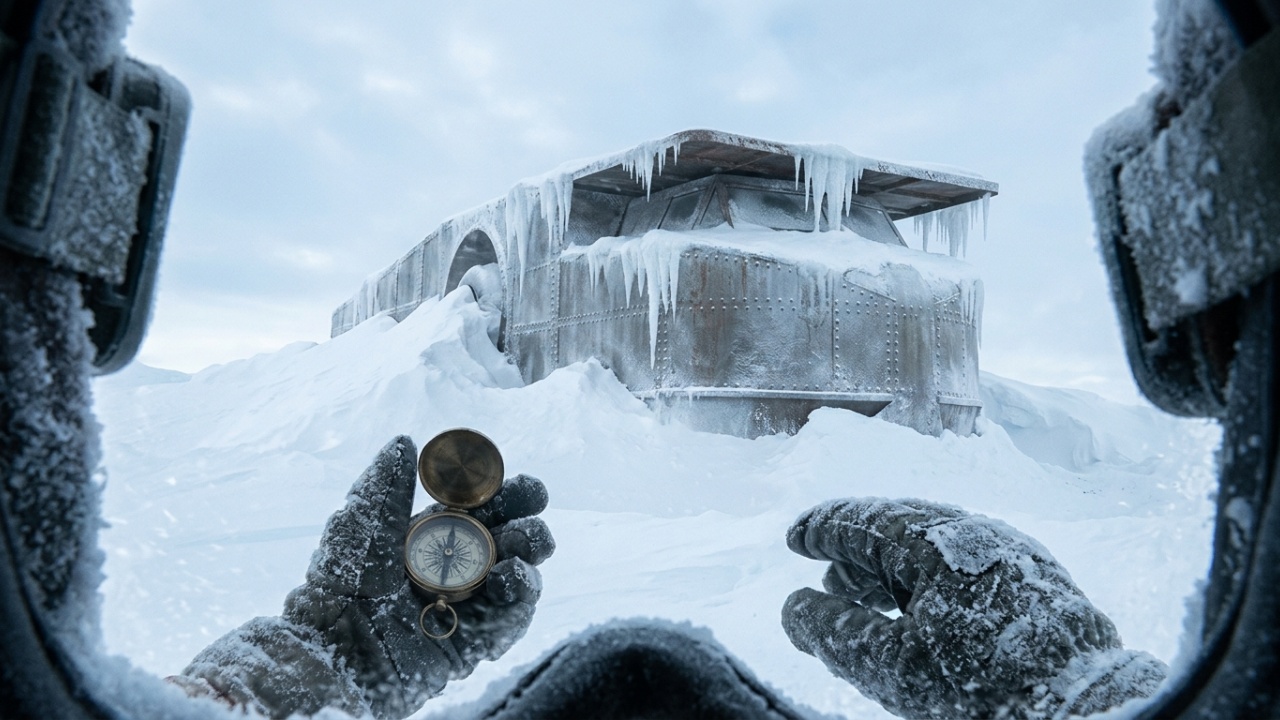 No gelo antártico, o peso concentrado das 37 toneladas do carro sobre os pneus lisos gerava calor por pressão, derretendo uma fina camada de gelo sob cada roda. Em vez de tração, o veículo ficava sobre uma película d’água, girando em falso sem avançar. O Snow Cruiser tinha chegado à Antártida com pneus projetados para o terreno errado.