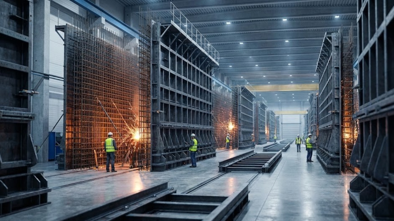 • 89 elementos pré‑fabricados, sendo 79 padrão e 10 especiais para sistemas elétricos