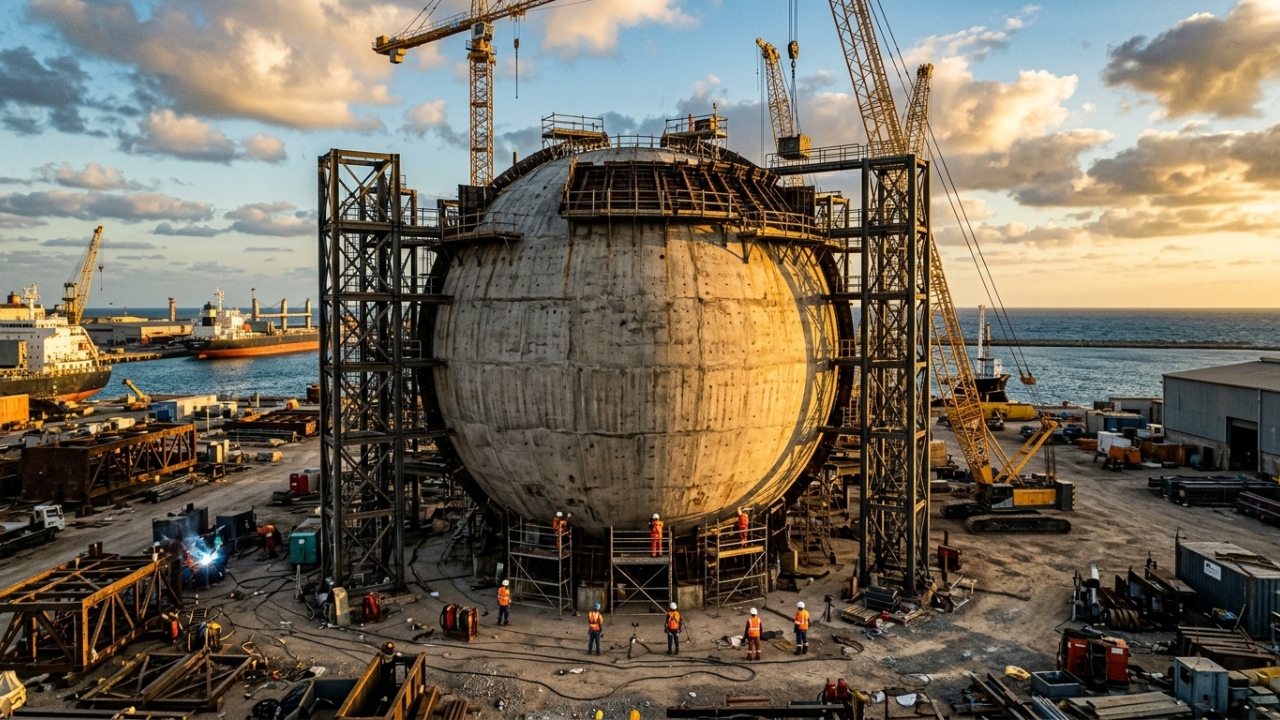 O salto entre o protótipo atual e a versão comercial deixa clara a escala da ambição do projeto. O protótipo, desenvolvido com a empresa americana Sperra por impressão 3D em concreto, tem 10 metros de diâmetro e será instalado na costa da Califórnia com 0,4 MWh de capacidade. A versão comercial prevista é de outro patamar: