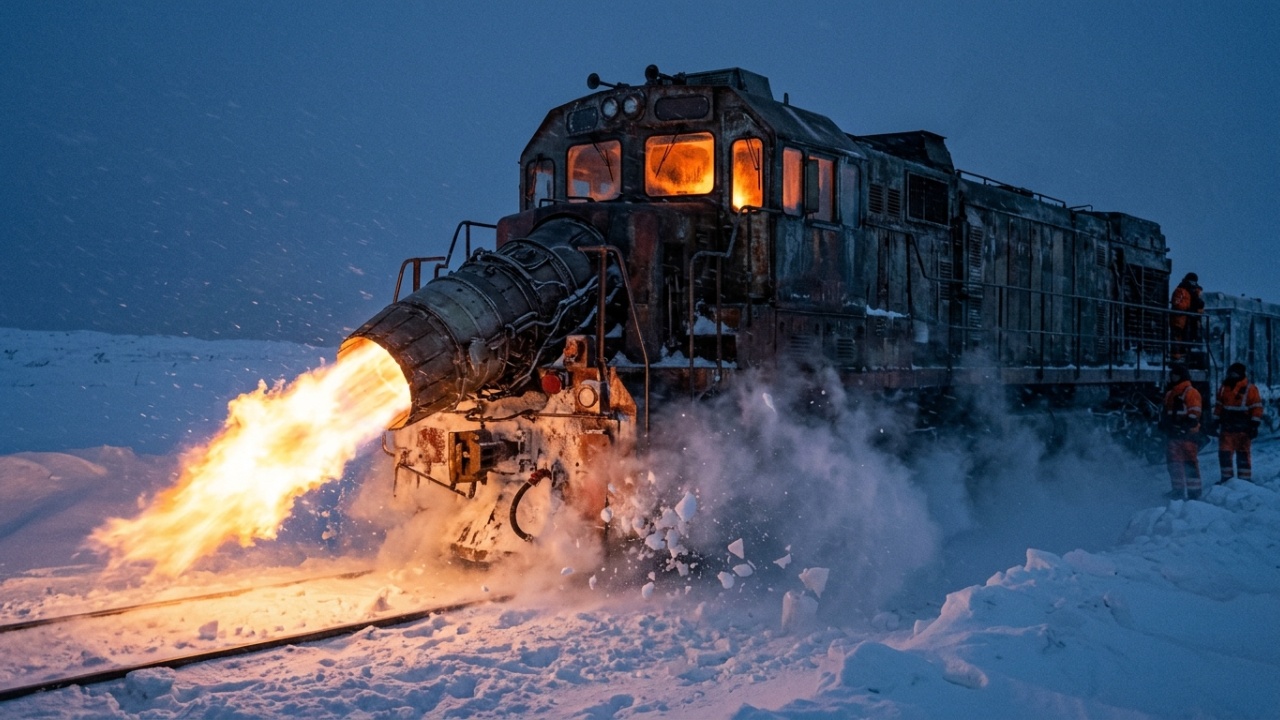 Se você já viu um trem parado no meio do inverno por causa de trilhos congelados, sabe que o problema é mais sério do que parece. Os motores de jato montados em vagões ferroviários conhecidos como Jet Snow Blowers existem exatamente para isso: disparar um jato de ar a mais de 1.000 km/h diretamente sobre os trilhos e derreter em minutos o que levaria horas para ser removido de qualquer outra forma.