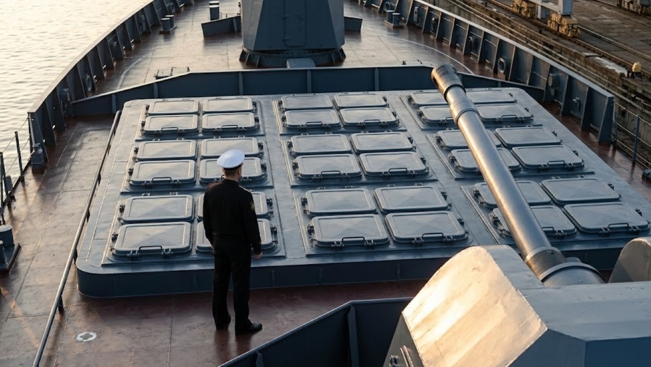 Os lançadores podem disparar diferentes tipos de armamento, incluindo os mísseis de cruzeiro Kalibr (alcance de até 2.500 km), os supersônicos Oniks (600 km) e os hipersônicos Zircon (1.000 km a Mach 9). Essa versatilidade permite à fragata atacar alvos navais, terrestres e submarinos com grande poder de penetração, conforme detalhado na Wikipedia.