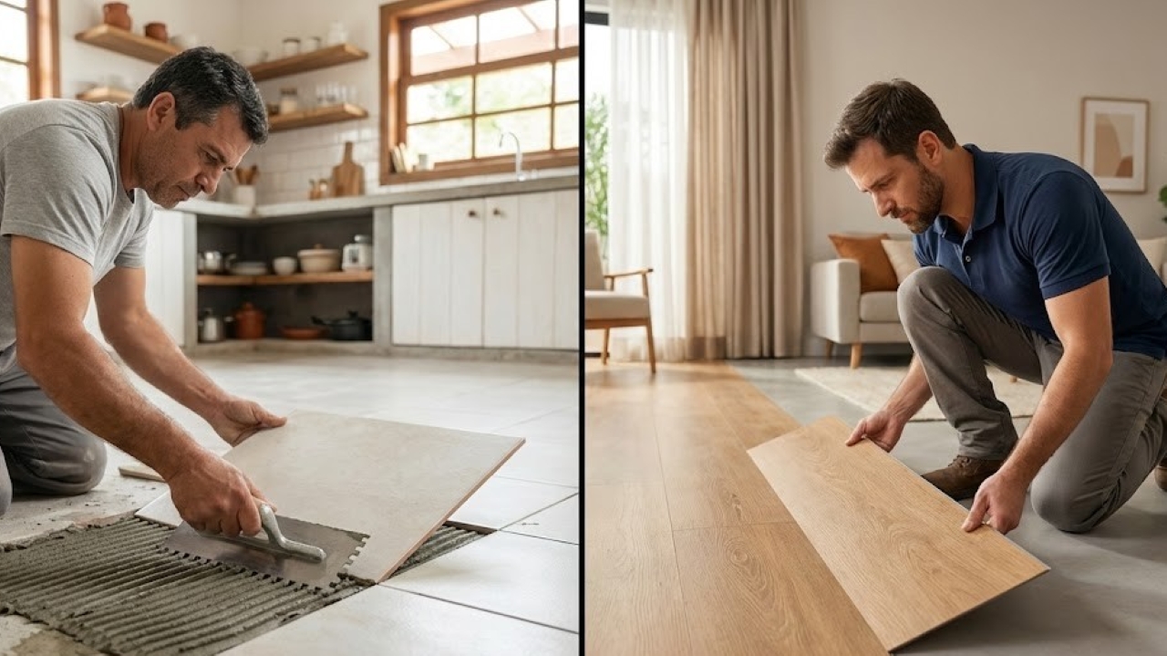 Piso vinílico versus cerâmica simples: compare os custos de mão de obra, o conforto acústico na reforma e decida qual é o ideal para a sua casa