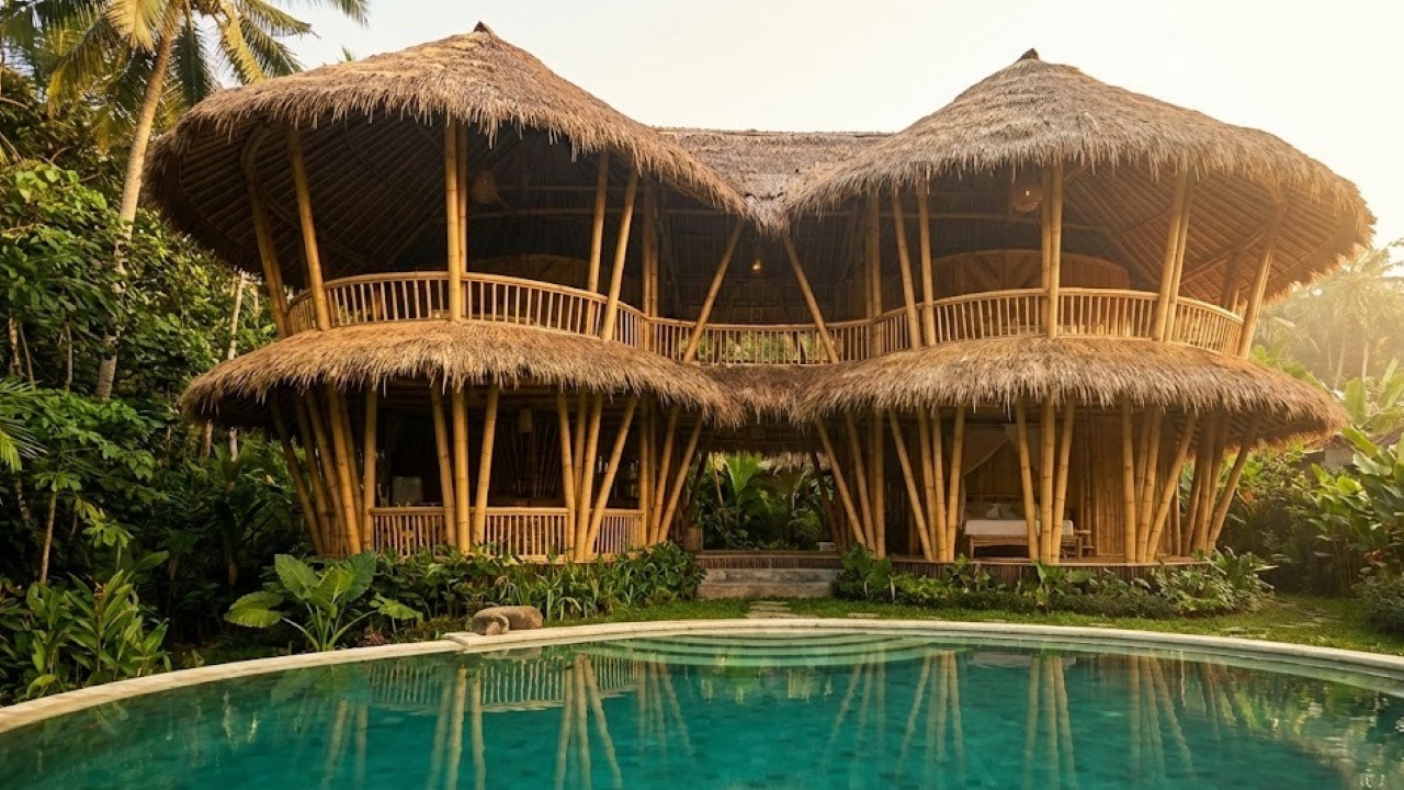 Erguer uma casa de bambu de alto padrão no meio da selva, sem usar um único prego ou ferramenta elétrica, parece uma missão impossível. No entanto, um grupo de quatro construtores provou o contrário ao criar uma vila de dois andares com piscina integrada, utilizando apenas facões, machados e técnicas ancestrais de arquitetura vernácula.