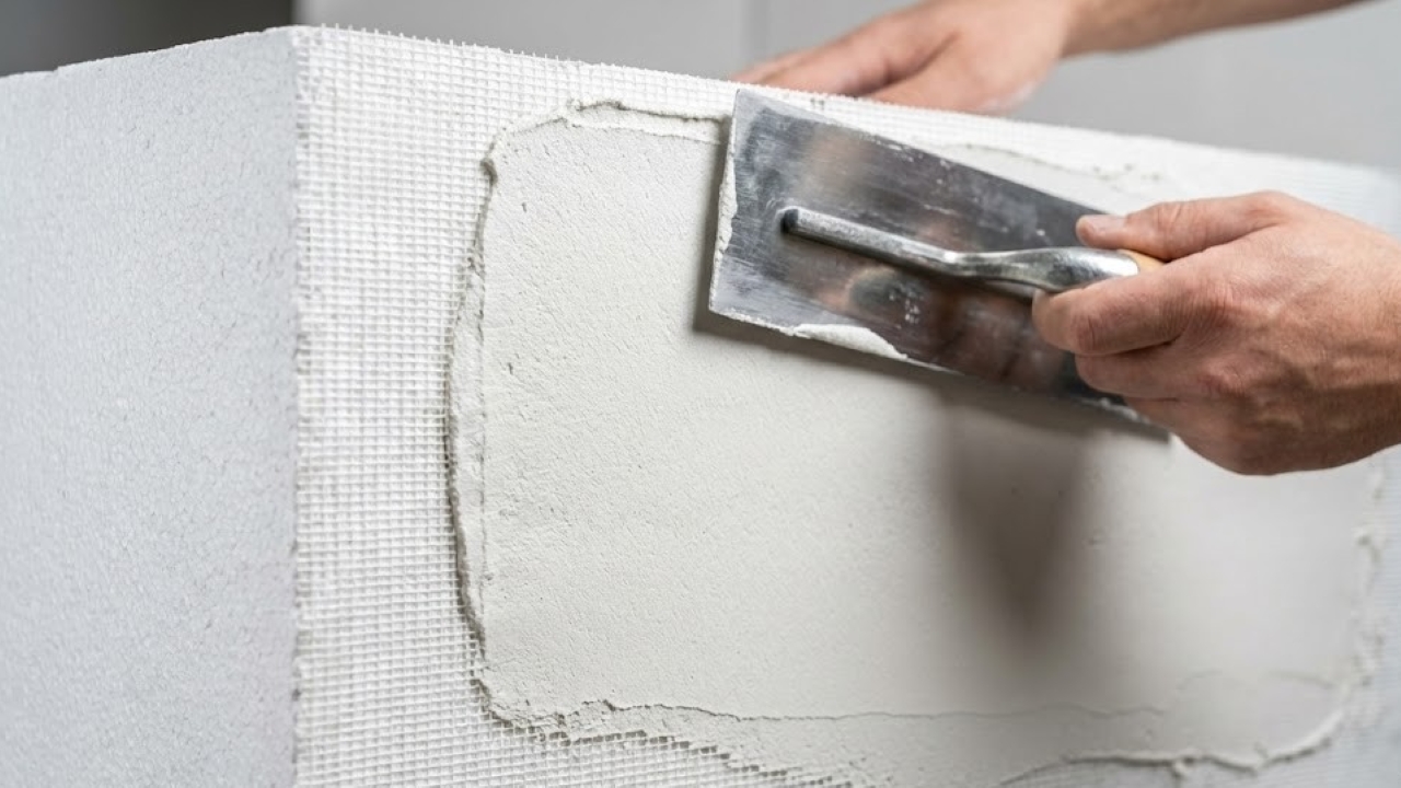 O ponto decisivo não estava apenas na espuma, mas no revestimento. Após cada fileira instalada, o exterior recebia uma camada de gesso reforçado. Em áreas estratégicas, uma malha estrutural era aplicada para evitar fissuras futuras. Esse reforço cria rigidez adicional e protege contra impactos externos.