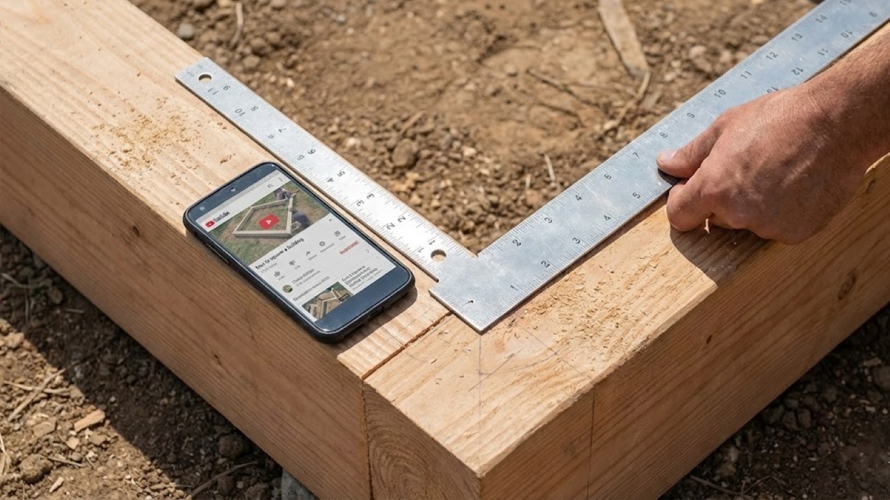 O esquadro é o primeiro divisor de águas em qualquer obra. Quando o casal diz que acertou o esquadro no “tio YouTube”, está falando de uma etapa ignorada por muitos leigos e que define o restante da construção: se o retângulo nasce torto, telhado, caixaria e encaixes passam a pedir correções sucessivas.