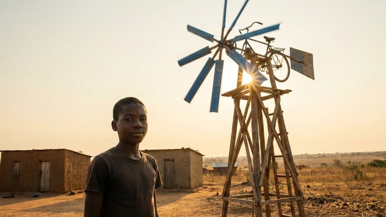 No início dos anos 2000, o Malawi enfrentava uma crise que deixou milhares de famílias sem acesso a serviços básicos. Foi nesse cenário que William Kamkwamba, um jovem de 14 anos, usou sucata, livros da biblioteca e um motor de bicicleta para construir um gerador eólico que levou luz à sua casa pela primeira vez.