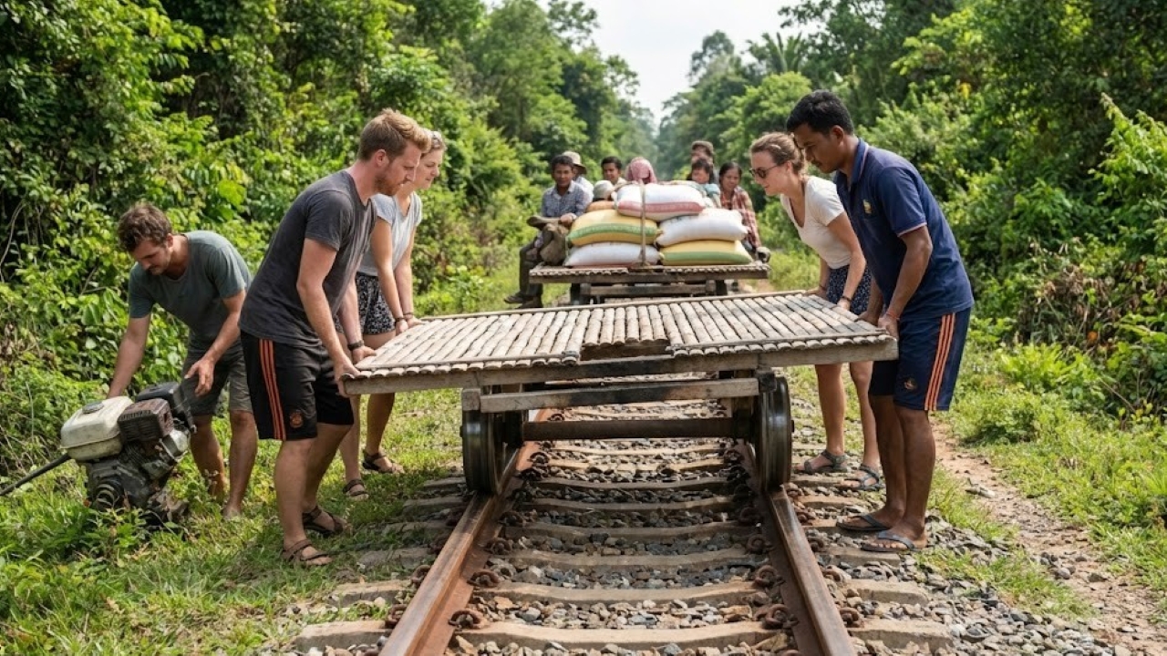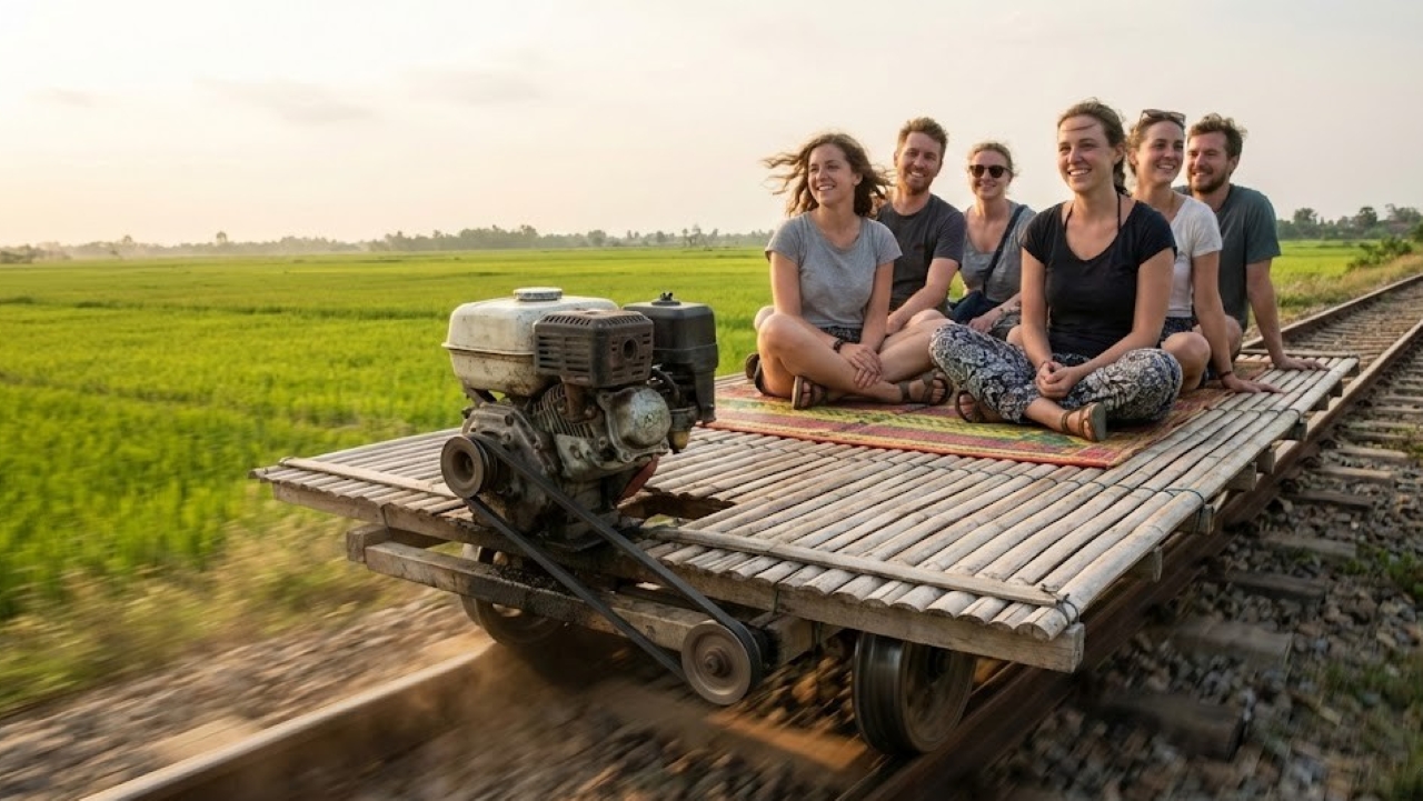 No interior do Camboja, uma engenhoca improvisada sobre trilhos abandonados se tornou símbolo de resiliência e diversão. O Norry, ou trem de bambu, é um carrinho movido a motor de barco que nasceu para conectar vilarejos isolados e hoje atrai turistas do mundo todo em Battambang.