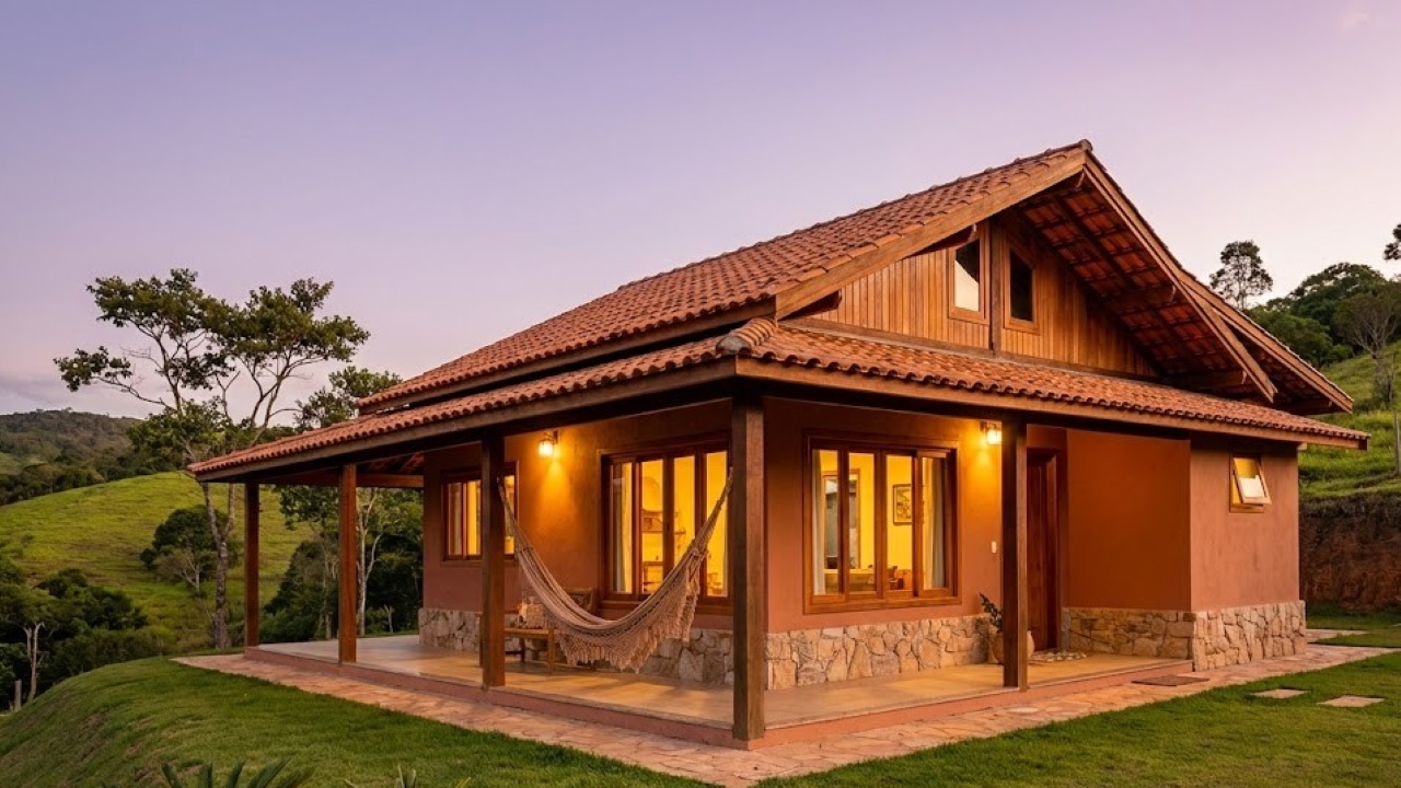 Esta casa rústica prova que é possível unir simplicidade, conforto e um orçamento acessível. Com 2 quartos, varanda ampla e acabamentos naturais, ela oferece o equilíbrio perfeito entre o refúgio campestre e a funcionalidade moderna. Seja para um casal jovem começar uma nova fase ou para aposentados que merecem descanso, o projeto mostra que qualidade de vida não precisa custar uma fortuna.