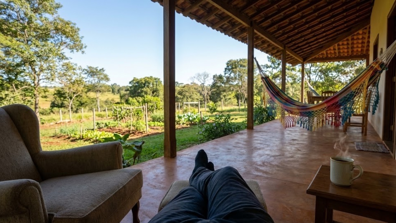 A integração entre o interior e o jardim valoriza a experiência de morar no campo, focando no bem-estar e na qualidade de vida. Para idosos, a estrutura térrea e a ausência de obstáculos facilitam a mobilidade, tornando o imóvel um excelente investimento para a aposentadoria.