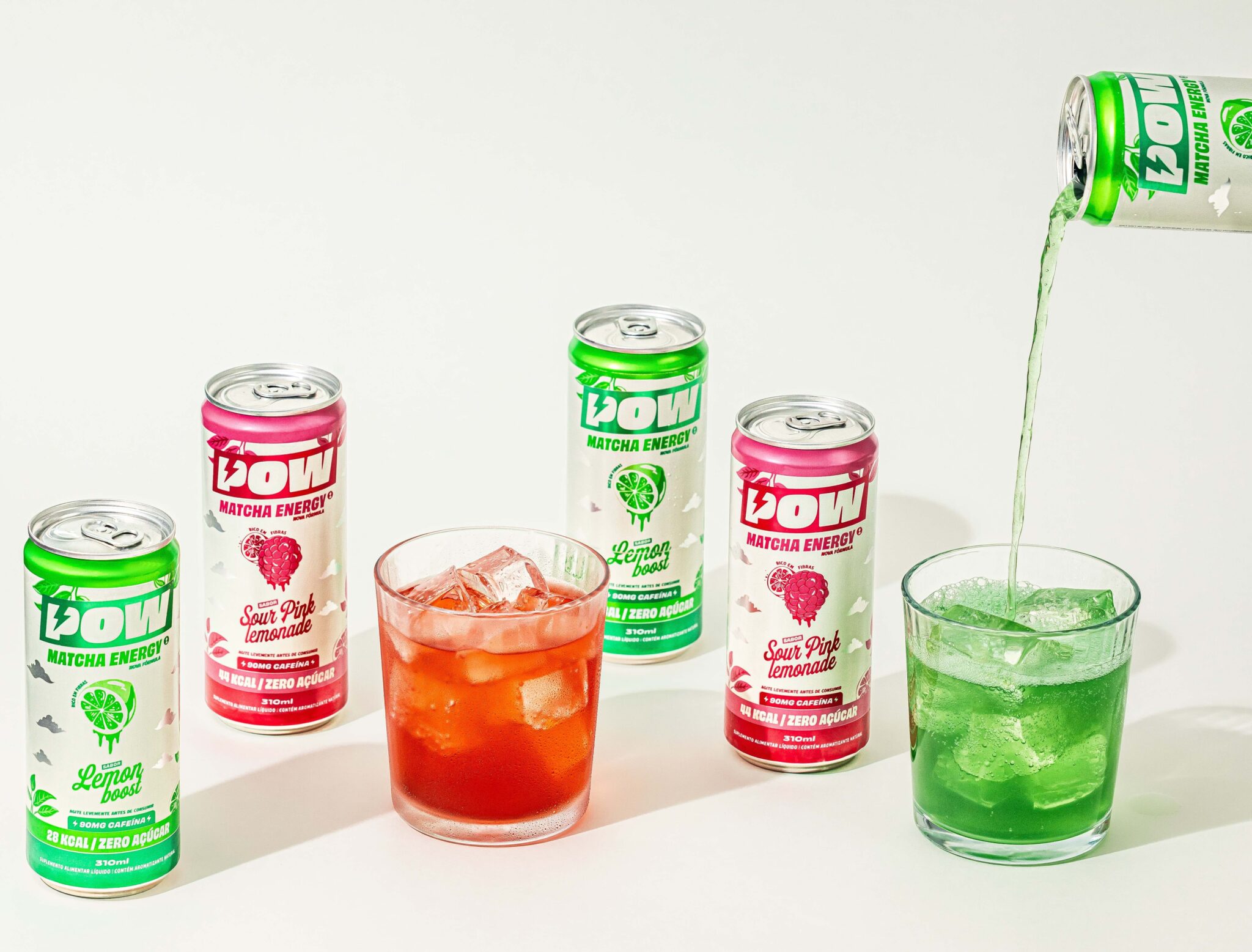 A Push & Pow oferece dois produtos principais: o matcha em pó tradicional e o POW, uma bebida energética pronta para consumo. O POW está disponível em dois sabores – Lemon Boost e Sour Pink Lemonade – e contém 90mg de cafeína por lata de 310ml, equivalente a uma xícara de café, sem adição de açúcar. A fórmula do POW inclui, além do matcha importado, taumatina, um mix de vitaminas e aromas naturais. Esta composição visa oferecer uma opção mais saudável, saborosa e refrescante no mercado de bebidas energéticas.