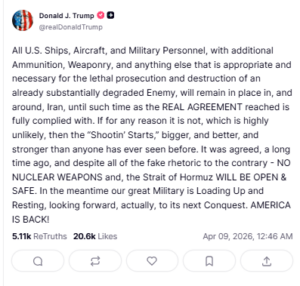 Na mesma publicação publicação em sua rede social, Trump afirmou que os Estados Unidos manterão forças militares posicionadas na região até que um acordo definitivo seja alcançado.