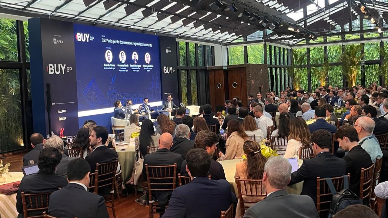 A programação do BUY SP e inclui painéis sobre temas como cenário econômico e político do Brasil, inovação, produtividade no agronegócio e o avanço do mercado de capitais 4.0. Um dos momentos mais esperados foi o painel “São Paulo: ponte dos mercados regionais com o mundo”, mediado por Ricardo Frizera, sócio-diretor da Apex, com a participação de Fernando Cinelli (fundador e presidente da Apex Partners), Gabriel Rodrigues (diretor do Polo São Paulo) e Henning Sandtoft (diretor institucional).