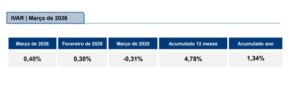 IVAR de Março de 2026 sobe 0,40%