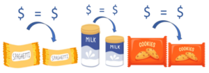 Um pacote de leite em pó, troca ingredientes nobres por misturas mais simples, entregando um sabor igual e às vezes até inferior, ou outro produto alimentício perde da sua composição umas duas unidades internas, porém o valor permanece o mesmo ao consumidor.