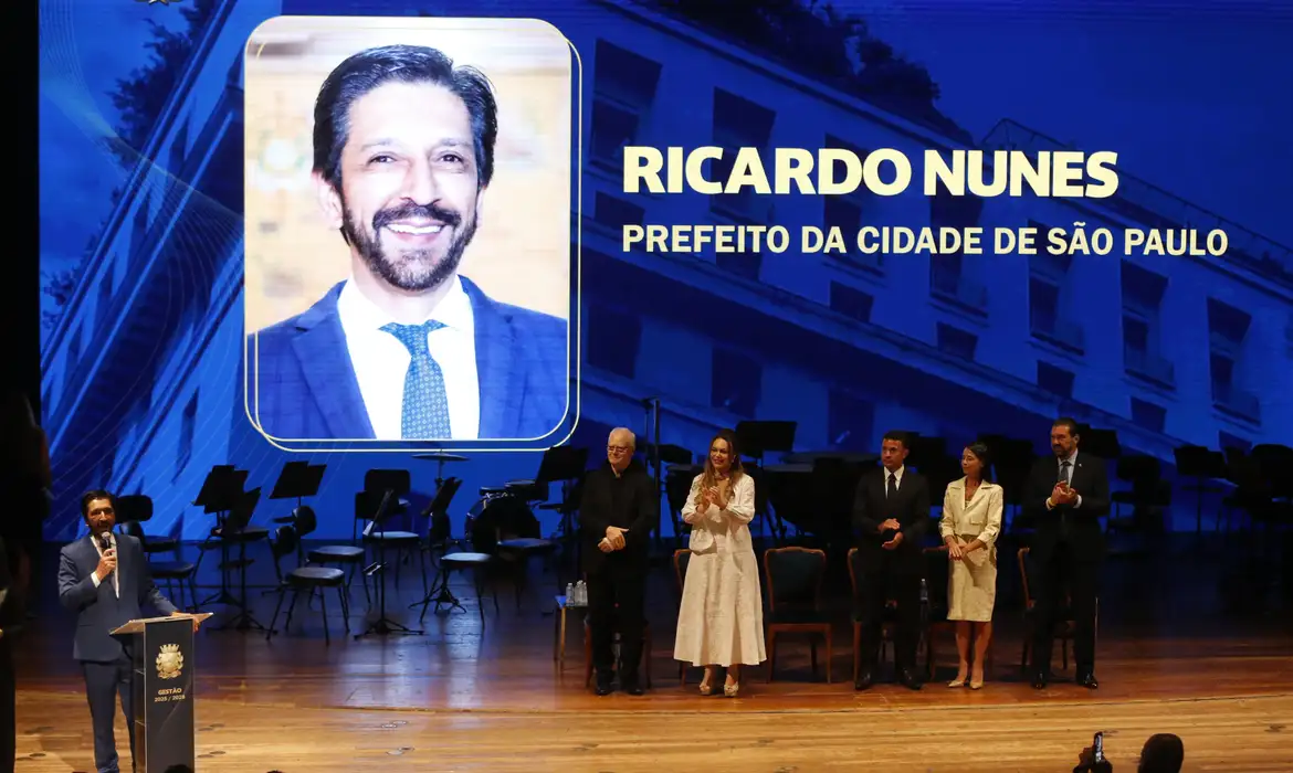 O prefeito de São Paulo, Ricardo Nunes, tomou posse do seu segundo mandato na tarde desta quarta-feira (1º), em evento na Câmara Municipal. Depois, Nunes foi para a cerimônia comemorativa no Theatro Municipal, quando deu posse ao secretariado. Os discursos, no Municipal, foram marcados pela ênfase numa gestão voltada para qualidade do atendimento aos cidadãos.