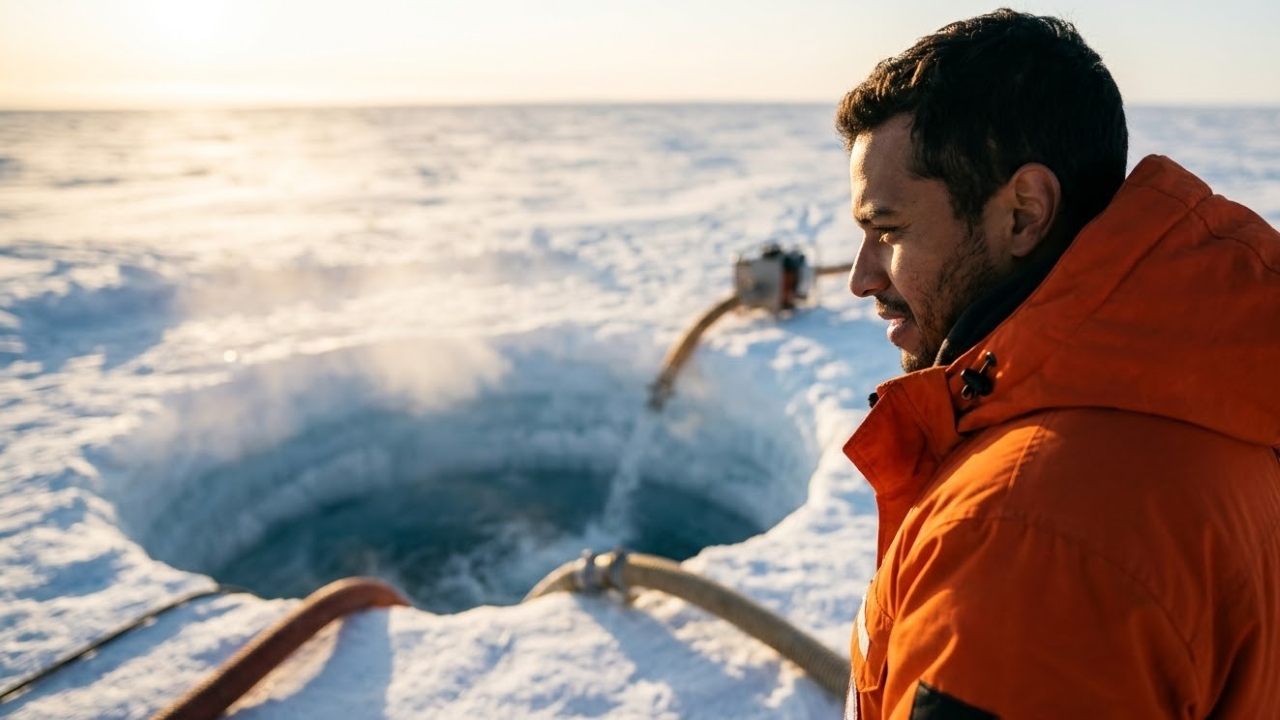 • Perfuração mecânica inicial focada nos primeiros 50 metros de neve compactada (camada porosa conhecida como firn).