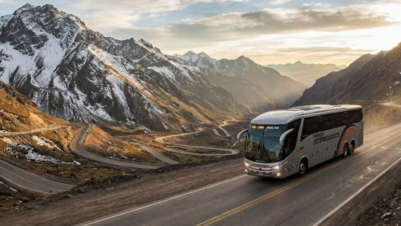 Após cruzar Porto Velho e Rio Branco, o ônibus chega à fronteira em Assis Brasil (Acre) e Iñapari (Peru). A partir daí, a Estrada Interoceânica guia os viajantes por uma mudança radical de cenário, subindo a imponente Cordilheira dos Andes até alcançar o destino final em Lima.