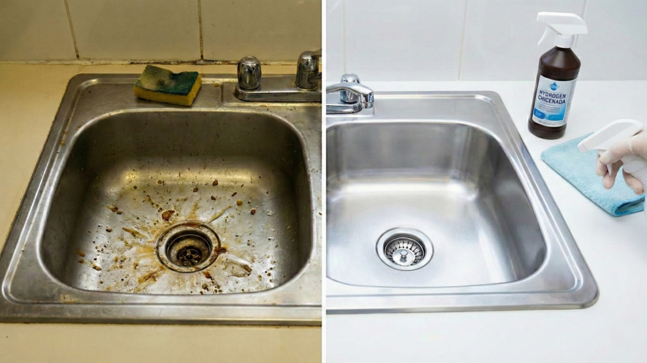 O ralo e as bordas da pia são os locais mais contaminados da cozinha, acumulando restos que fermentam e atraem insetos. Para resolver isso sem usar produtos industriais caros, a combinação de água oxigenada com bicarbonato de sódio cria uma reação poderosa.