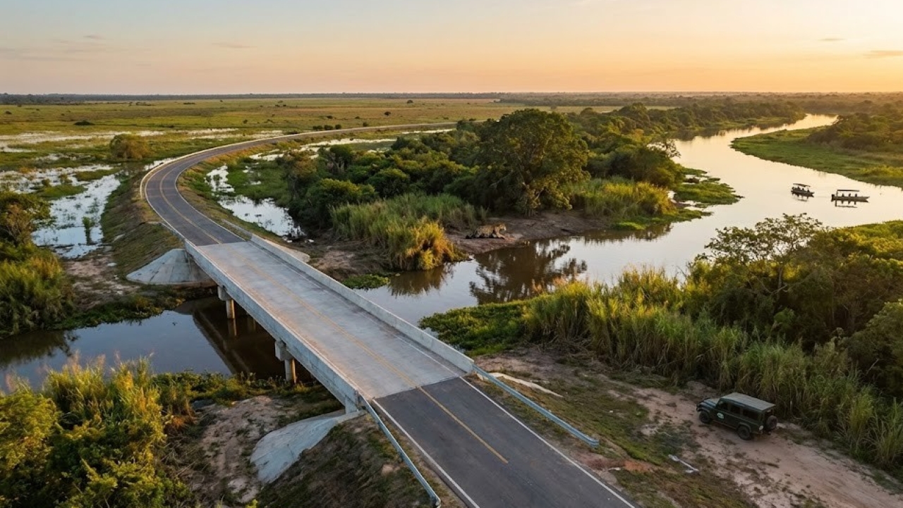 Pela primeira vez, os dois estados que dividem a maior planície alagável do mundo estarão conectados por via terrestre segura sobre o Rio São Lourenço. Até hoje, a falta de uma travessia estruturada funcionava como um gargalo que isolava comunidades e dificultava o fluxo turístico.
