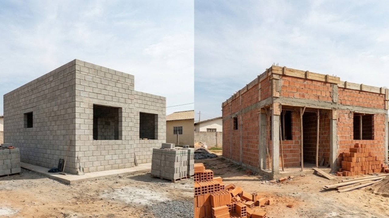 Quem planeja construir uma moradia compacta enfrenta um dilema financeiro imediato na escolha dos materiais básicos. Para uma casa térrea de 40 m², optar pelo bloco de concreto estrutural em vez do tijolo de barro tradicional pode representar uma economia estimada entre 10% e 20% no custo total da obra, cortando gastos excessivos com madeira e etapas de acabamento.