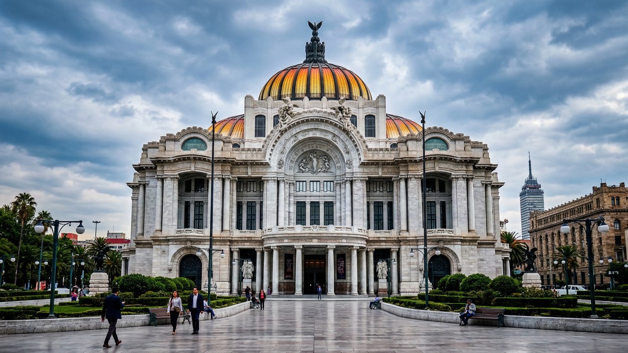 O Palacio de Bellas Artes, na Cidade do México, é o maior ícone cultural e arquitetônico do país. Inaugurado em 1934, sua majestosa fachada de mármore de Carrara e cúpula de bronze tornaram-se o símbolo da identidade artística mexicana.