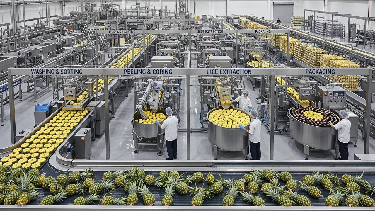 Um documentário que revela a operação de uma mega fábrica mostra como o processamento do abacaxi atinge a impressionante marca de 250.000 frutas por dia. Este guia detalha como essa logística, da fazenda à fábrica, garante a qualidade do produto final.