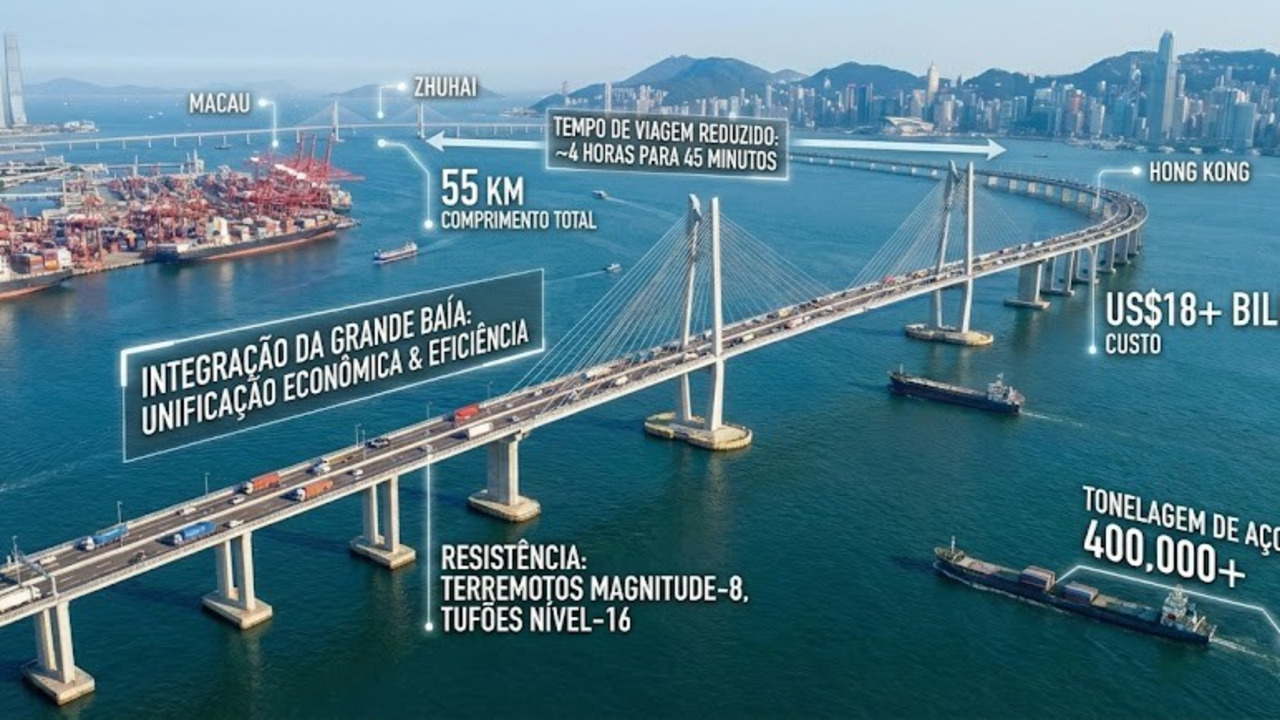 Considerada uma das obras mais complexas da engenharia moderna, a Ponte Hong Kong-Zhuhai-Macau redefiniu os limites da construção civil ao erguer 55 km de estrutura sobre as águas do mar da China. Com um custo astronômico que superou os US$ 18 bilhões, essa megaestrutura consumiu aço suficiente para construir 60 Torres Eiffel e foi projetada para durar mais de um século.