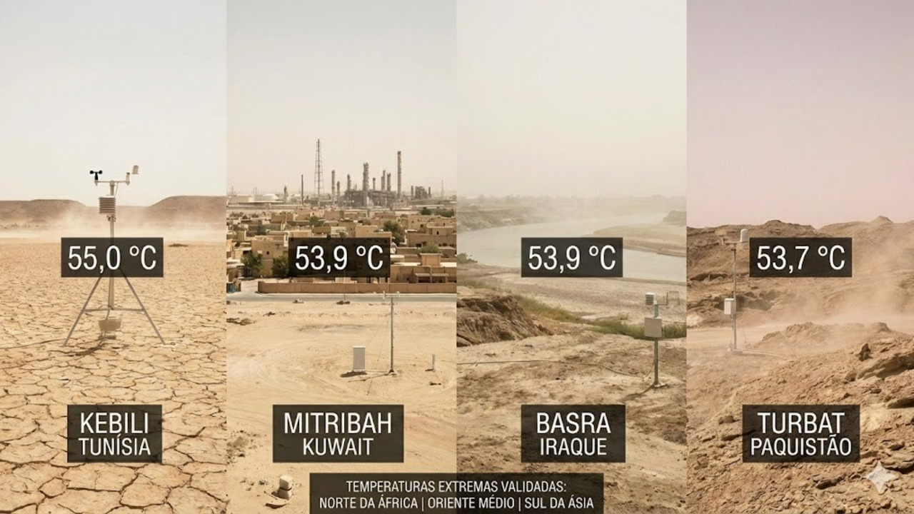 Embora os Estados Unidos liderem o ranking, o calor extremo não é exclusividade da América do Norte. Ondas de calor brutais já foram documentadas em diversos continentes, aproximando-se perigosamente da marca histórica.