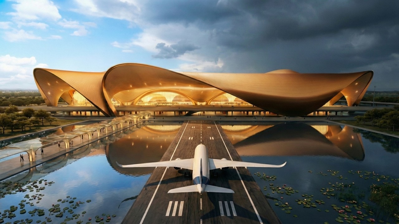 Um dos destaques do complexo é o terminal inspirado na flor de lótus, que alia simbolismo arquitetônico e eficiência no fluxo de passageiros, check-in, embarque e conexões. A infraestrutura já nasce preparada para expansões estruturais, tecnológicas e logísticas, acompanhando o crescimento da demanda na aviação indiana.