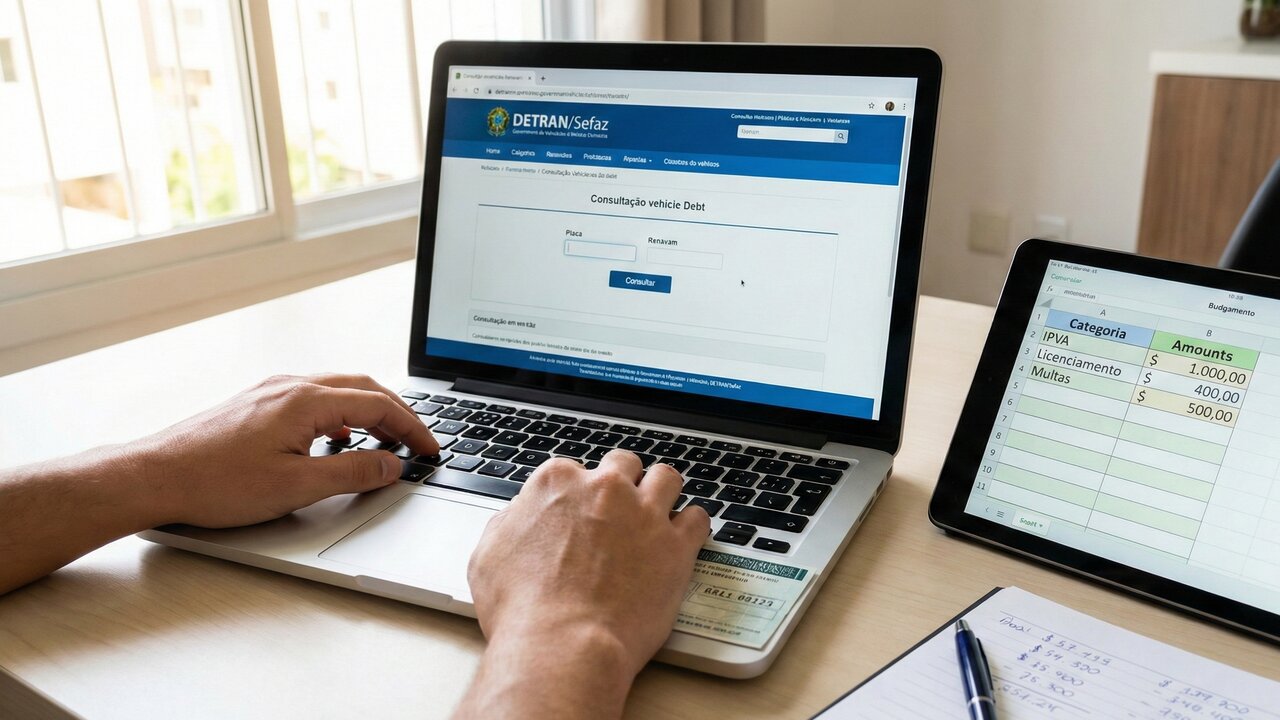 O primeiro passo é ter em mãos o número do Renavam (Registro Nacional de Veículos Automotores) e a placa do carro. Com esses dados, acesse o site do Detran do seu estado ou o aplicativo da Secretaria da Fazenda para levantar todas as pendências atreladas ao seu CPF e ao carro.