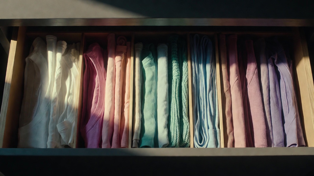 O princípio central dessa organização asiática consiste em transformar camisas e calças em pequenos retângulos firmes de tecido. Dessa forma, as peças são posicionadas de pé lado a lado, eliminando as tradicionais pilhas que costumam desmoronar e dificultar o acesso rápido ao vestuário no dia a dia.